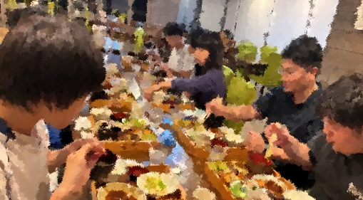 高等部の作業学習とわとくカフェの授業を、和田山高校の生徒の皆さんに体験してもらいました。初めましての人もいれば、小学校以来の再会の人もいたようです。お互い緊張していましたが、一緒に活動する中で少しずつ会話が増えて、笑顔もたくさん見られました。