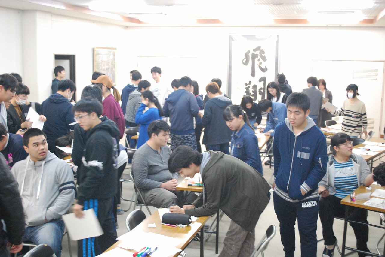 ホワイトボードを使ったゲームをしながら、学年を越えて、生徒同士がコミュニケーションを図っていました。