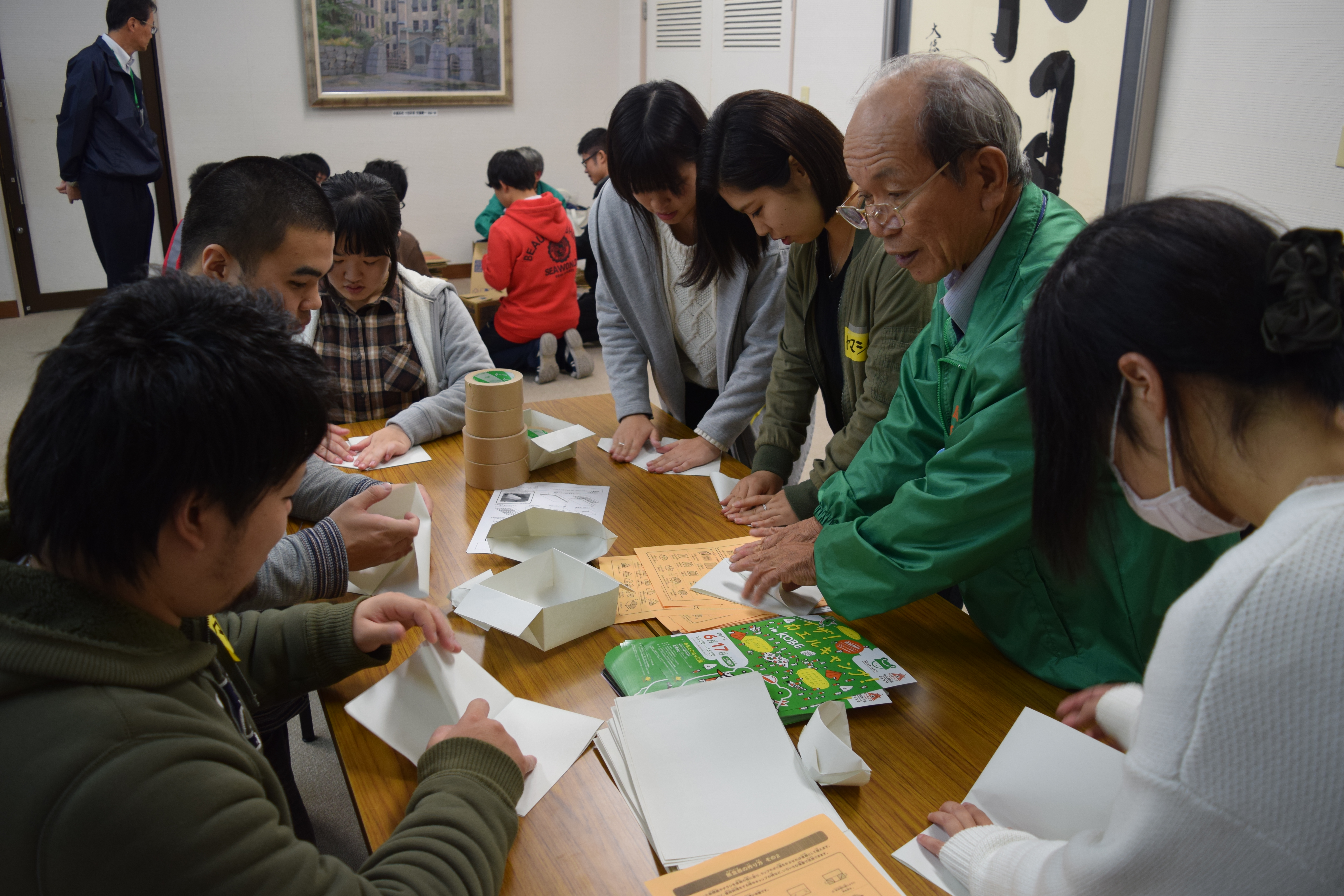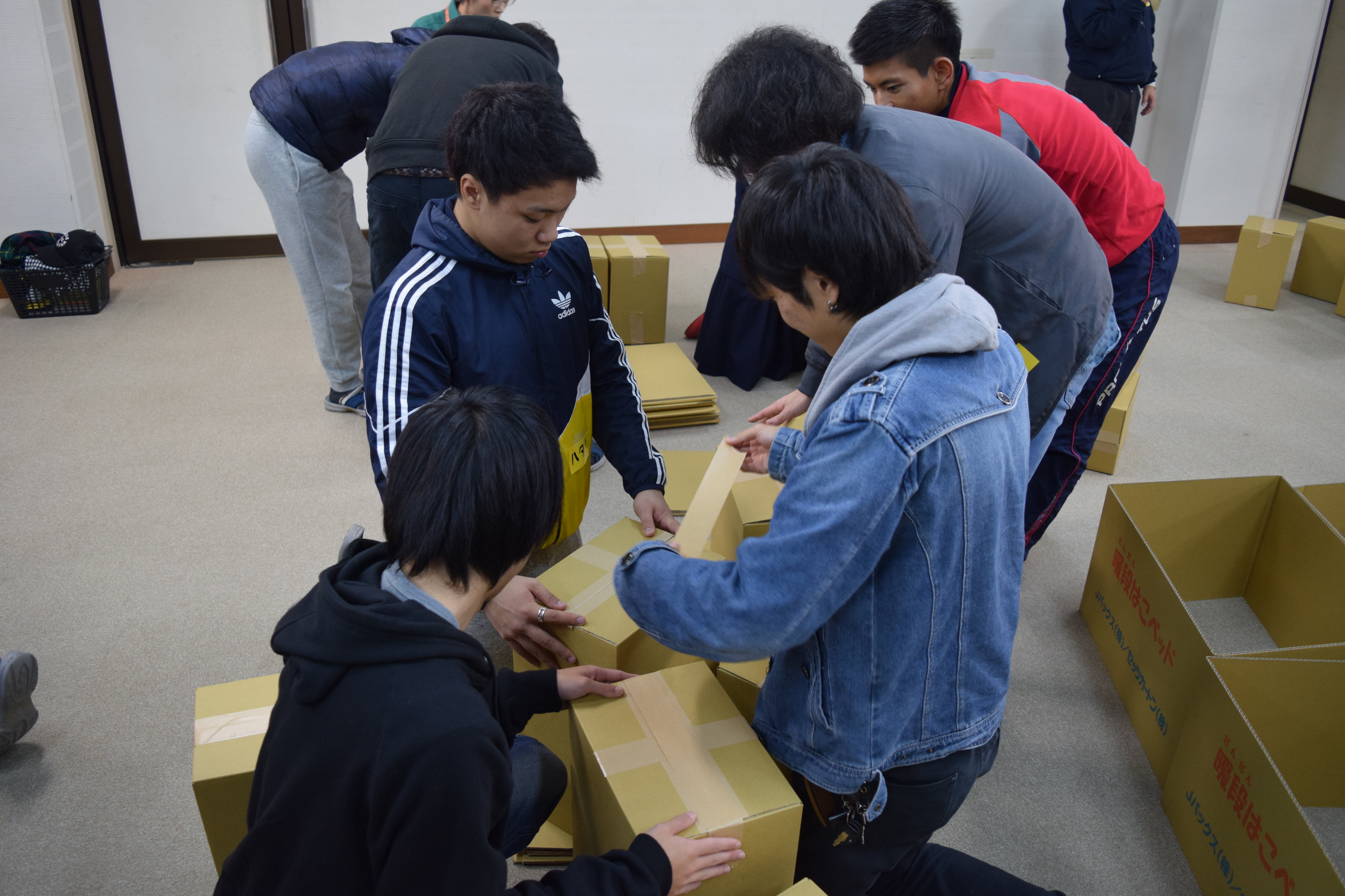 アルファ化米の試食や段ボールベットの組み立てなどを体験しました。