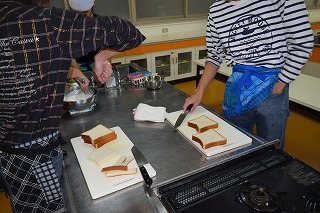 どんなパンができるかな?4年生はどちらのチームが手際よく、調理しています。