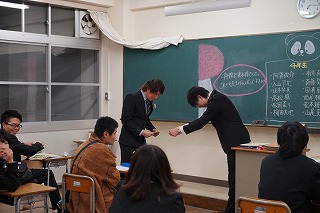 卒業生にそれぞれ記念品を授与されました。長く使用できる記念品をいただきましたので、大切に使用していきたいです。