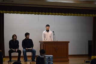 今日は2月より4年生は自由登校となるので、4学年が揃う最後の全校集会となりました。