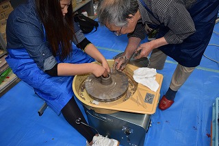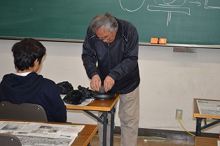 陶芸体験(3年)② 2015年11月26日未分類admin 今日の陶芸体験は3年後半組でした。 引き続き西垣先生を講師に招き、ろくろ体験を行いました。 最後の仕上げに鹿の皮で表面を滑らかにしていきます。