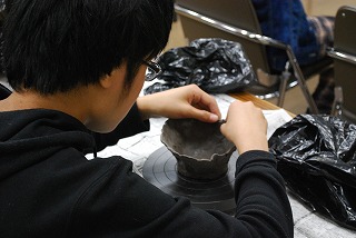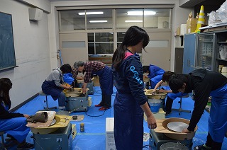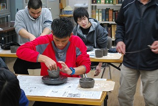 陶芸体験 2015年12月8日未分類admin 今日は1年2組が手回しろくろを使った湯飲みを作りました。 講師の西垣先生による実演を見て、生徒たちもやり方を学んでいます。 西垣先生のようには素早く作れませんが、見よう見まねで自分たちの作品を作っていきます。 明日からはそれぞれ作った作品の表面を削って滑らかにしていく作業が始まります。 どんな作品が完成するのか楽しみです。