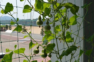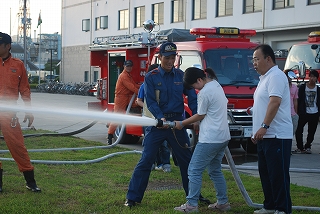 消火ホースを使った実際の放水の様子です。かなり水の勢いが強く、足を踏ん張っていない生徒がよろける姿もチラホラ見かけました。