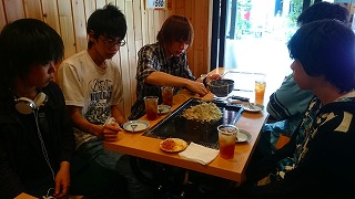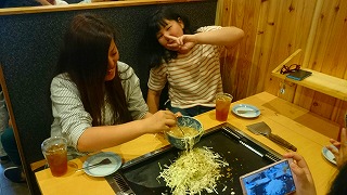 11:20 月島亭にて、もんじゃ焼きを食べました。