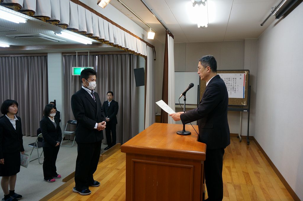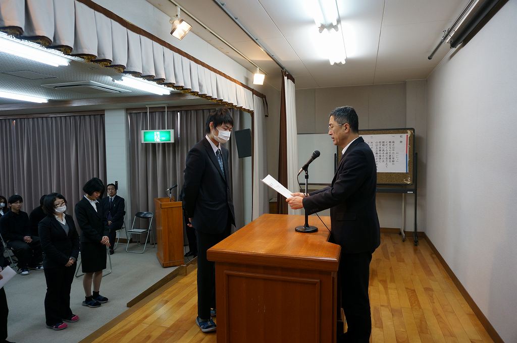 表彰伝達では、年間皆勤賞、3学期皆勤賞、情報処理表計算検定合格者、ホームページ検定合格者へ表彰が行われました。