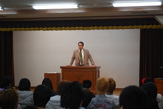 連休明けの本日、1限に全校集会が同窓会館で行われました。