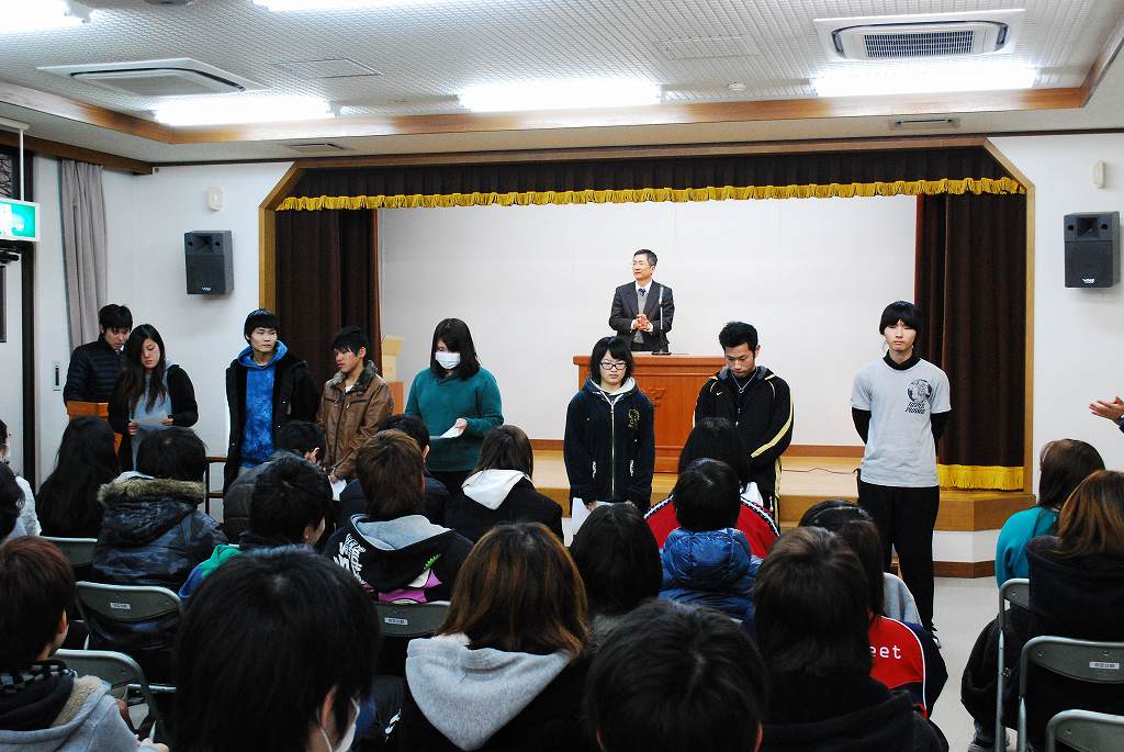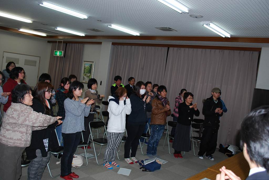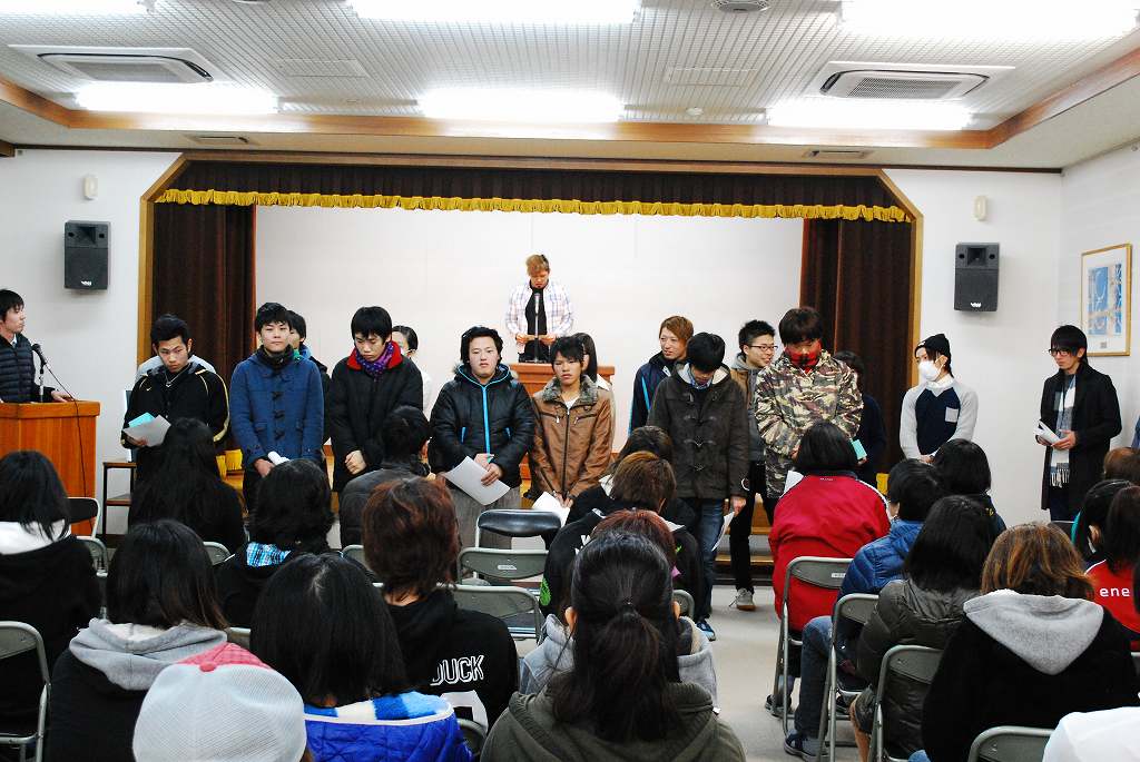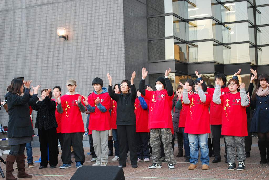 3月11日に赤穂市役所で行われた「3.11絆ラーメンを味わう集い」のオープニングで、本校定時制の生徒、教員と手話学習会「ハンドフレンズ」がいっしょに、東日本大震災復興支援ソング「花は咲く」を手話で歌いました。