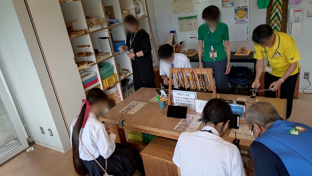 取材後は組み紐作り体験に飛び入りで参加させてもらいました。