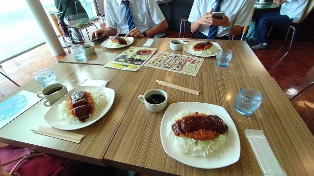 お昼ごはんは加古川のご当地グルメ「かつめし」をみんなで食べました。「かつめし」とはご飯の上にカツをのせてデミグラスソースをかけた料理です。ごちそうさまでした!