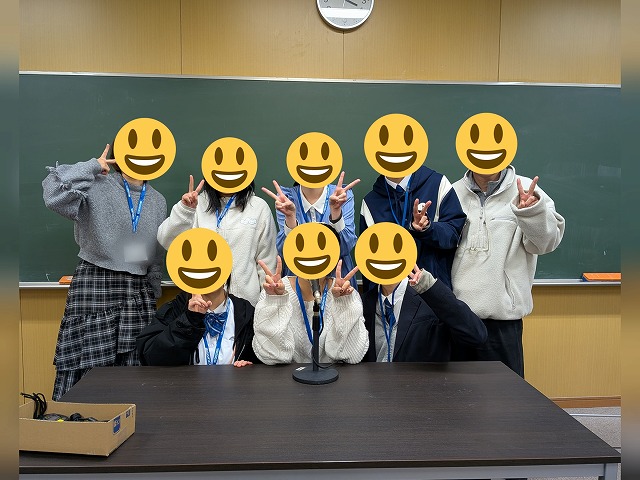 関西を中心にフリー声優として活躍しているTさん、大阪芸術大学のアナウンス音声表現コーススタッフのMさん、大阪芸術大学短期大学部メディア・芸術学科声優コース1年のKさん、この3名は本校の放送部顧問の教え子です。また、昨年の全国高校放送コンテスト兵庫県大会の朗読部門で優勝した県伊丹高校3年のEさんにも来てもらいました。