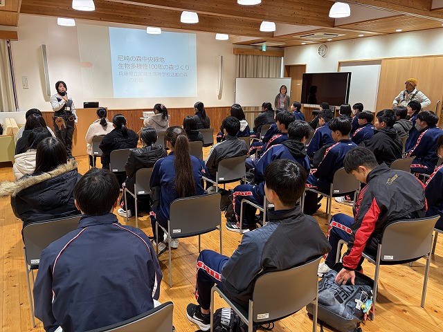 講義では、尼崎の森のプロジェクト発足から20年が経過し、キツネやフクロウ等様々な生物が暮らす自然豊かな場所になりつつあることを学習しました。
