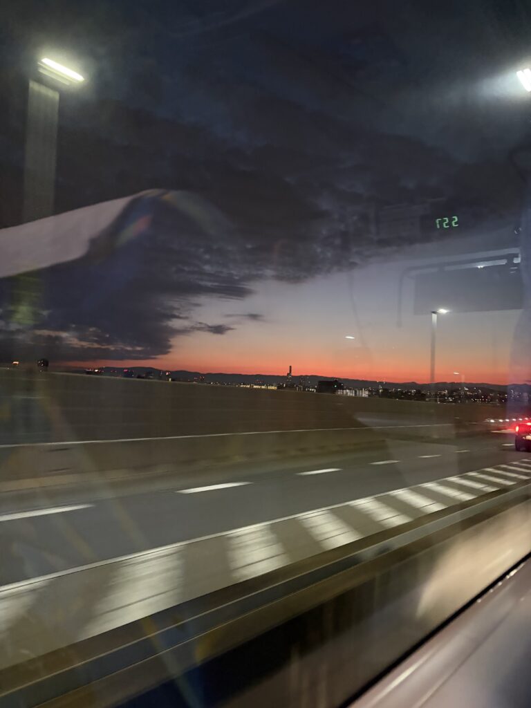 76期修学旅行 #2 1日目 朝 2025年11月17日 最終更新日時 : 2025年11月17日 user76 時刻は朝5:40。 肌寒い朝です。関西国際空港へ向け出発しました。ワクワクした目、ドキドキした目、眠たそうな目、早く暖かい沖縄に行きたい!! 朝焼けが綺麗でした。