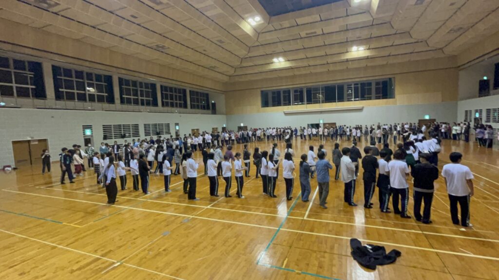 有志による漫才、ダンスを始め、修学旅行委員が時間をかけて考えてくれたゲームを行い、民家の方々を含む学年全体で楽しむことができました。