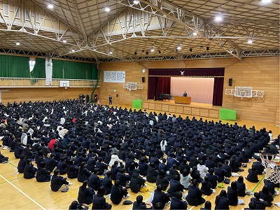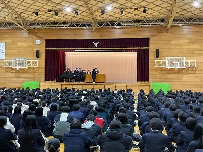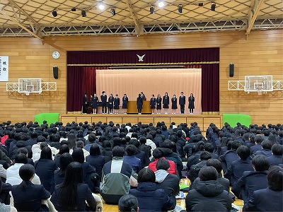 令和7年度2学期終業式 2025年12月24日 最終更新日時 : 2025年12月26日 amakita_hs 2学期を締めくくる終業式が行われました。また、式後行事として、生徒会認証式、表彰披露が行われました。
