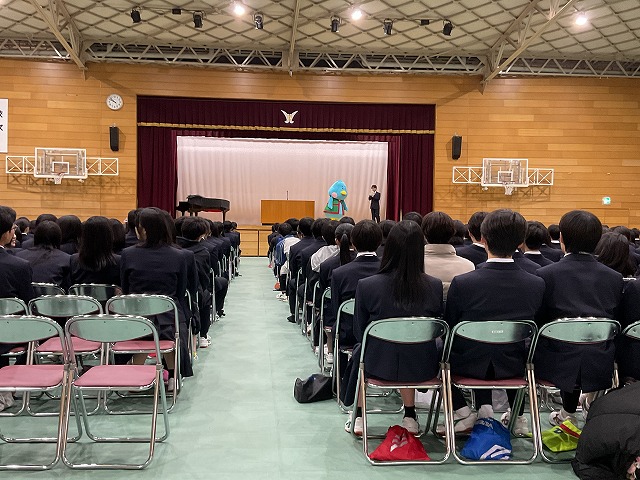 令和7年度3学期終業式 2026年3月23日 最終更新日時 : 2026年3月26日 amakita_hs 3学期の終業式が行われました。式後行事で、マスコットキャラクターのリバティちゃんの着ぐるみのお披露目がありました。リバティちゃんの詳細については、マスコットキャラクターのページをご覧ください。