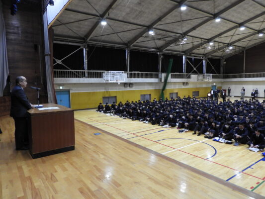 1/8(木)始業式 2026年1月8日 最終更新日時 : 2026年1月9日 nagasu 第3学期始業式が行われました。 校歌斉唱 校長講話 その後、大掃除と頭髪服装検査がありました。3学期が始まりました!