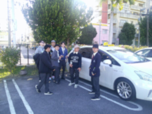 今日はタクシー研修です。運転手と顔合わせをし出発して行きました。アメリカンビレッジ・道の駅「かでな」・国際通りなどの観光名所を巡ります。事前に決めた計画通りにいくでしょうか?