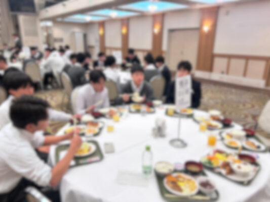 6:30に起床、7:00から朝食を食べました。朝からみんな元気でした。