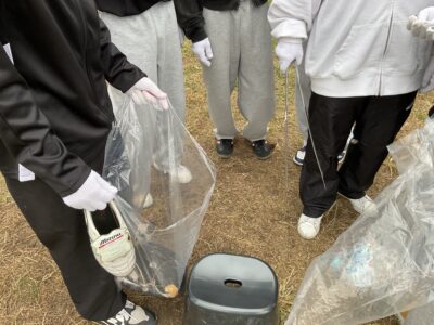 11月5日(水)6限、1学年全体で、武庫川の河川敷にて、清掃活動を行いました。クラスごとに分かれ、ゴミ拾いを行いました。