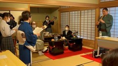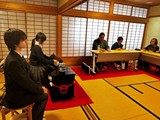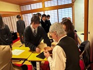 茶道部員たちは、琴や三味線で校歌と赤とんぼの演奏を披露しました。部員による和楽器演奏の後は、地域の方と「ソーラン節」を合奏しました。地域の方に、和楽器演奏体験やお点前体験を楽しんでいただき、終始和やかな会となりました。