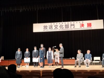 11月16日(日)に、高砂市文化会館を会場にて行われました第49回兵庫県高等学校総合文化祭放送文化部門決勝で、本校放送部がテレビ番組小部門(ドキュメント)で銀賞(3位)、ラジオ番組小部門(ドキュメント)で銅賞(5位)を受賞しました。