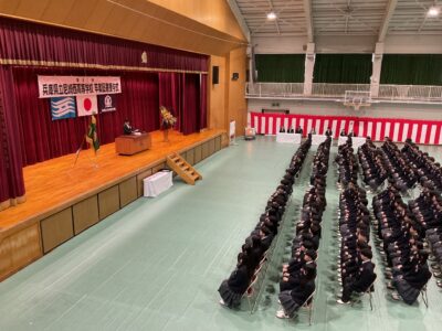 令和8年2月27日、第61回卒業証書授与式が挙行されました。堂々とした姿で式場に入場する三年生の表情には、三年間の努力と成長が刻まれていました。在校生代表の送辞には先輩への思いが詰まっており、答辞では未来への決意と感謝の言葉がまっすぐに響きました。卒業生の皆さんが、これから歩む道で自分らしく力を発揮し、大きく羽ばたいてくれることを心から願っています。ご卒業、おめでとうございます。