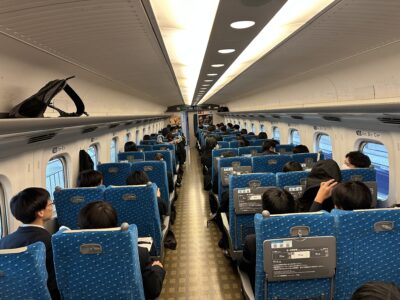 集合状況もよく、スムーズに新幹線に乗り込みました。素晴らしい学年です。