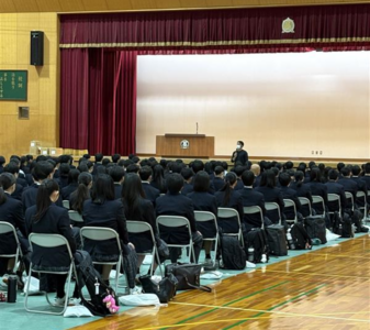 話がありました。3限以降は数学、英語、国語の高校での勉強の仕方を学習しました。生徒は熱心に聞いていました。
