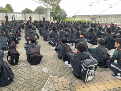 4月24日(金)は遠足でした。前日は雨だったので天候が心配でしたが、晴れてさわやかな1日でした。9時30分頃学校を出発しフルーツフラワーパークへ向かいました。到着後すぐイベント広場にてクラス写真を撮影し、その後はBBQ広場にて皆でバーベキューを食べました。昼食後は学年全体でレクリエーションをしました。クラス対抗大縄大会に向けて練習をし、クラスの絆を深めることができました。14時過ぎ神戸フルーツフラワーパークを出発し学校へ戻ってきました。楽しい1日を過ごしました。
