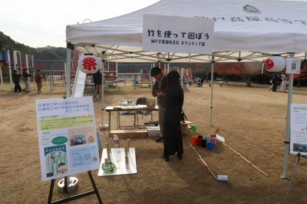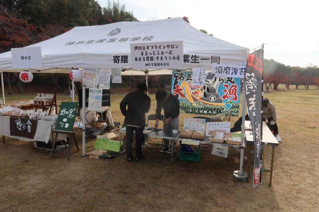 本校は、美術部の缶バッジづくりや、ボランティア部の竹を使ったワークショップ、文理探究科の廃棄野菜チームによる規格外野菜の提供、須磨のりの普及を目指すチームによるのりの試食・販売など、多彩な内容で来場者に楽しんでいただきました。文理探究科の生徒が自ら地域へ声をかけ、協力を得て実現したブースもありました。(「野の舎」「赤まる農園」「すまうら水産」「障がい者家族の会 神戸 紬(つむぎ)」「なちゅらすふぁーむ」「まるっとふぁーむ」「鶴田農園」など 敬称略)