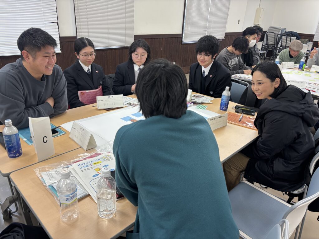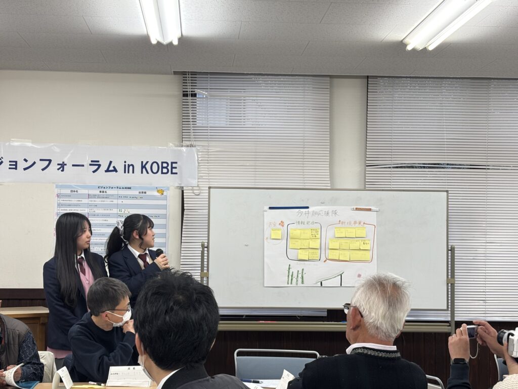 令和8年3月7日、神戸県民センター 県民躍動室県民課ビジョン・青少年担当が主催する「ビジョンフォーラム in KOBE」が神戸市立ふたば学舎で開催され、本校の探究グループ2チームが参加しました。フォーラムでは、これまで取り組んできた探究活動についての報告を行うとともに、大学生や地域団体とのグループディスカッションにも参加しました。さまざまな立場の方々と意見を交わす中で、多角的な視点から地域の課題について考えることができました。