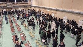 また、今年は初めての試みとして、今まで展示のみで終わっていたポスターを体育館フロアの周囲に並べてポスターセッションを行いました。発表する側、聞く側お互いに相手のことを考えながらしっかりとセッションが行われました。