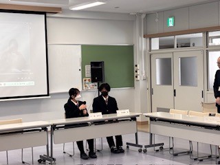 教員による説明だけでなく、交流及び共同学習についての説明では、特別支援学校の生徒2名に参加してもらい、評議員の方々からの質疑に答えてもらいました。
