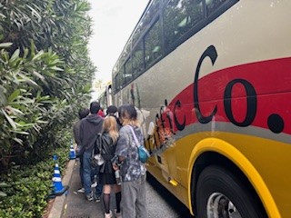 修学旅行 2日目 ② 選択別観光へ出発 2025年10月29日 hanshinkoya_hs2 コメントする 予定通り選択別研修へ出発します。まずは、江ノ島、鎌倉コースが先発、続いて横浜方面、三鷹の森・下北沢、浅草・スカイツリーの各コースが出発します。 集合 諸連絡 要人来日中のためやや道が混んでいますが、まずは順調。スカイツリーを眺めつつ、バスは進んでいきます。 本日は、バスガイドさんも乗車。東京の名所案内を聞きながら、一路、各目的地にに向かいます。