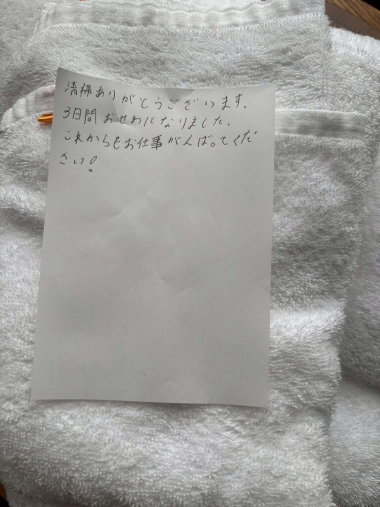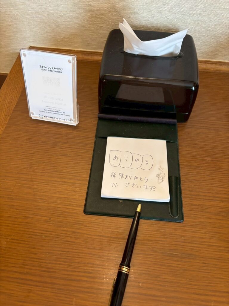 修学旅行(高校) 番外編 2025年10月31日 hanshinkoya_hs2 コメントする 修学旅行を無事終えることができましたが、その間のエピソードを一つ。 修学旅行最終日、ホテルから生徒が退出した後、部屋の点検した先生が見つけたのがこちら。 なんだか、心があたたまりませんか?