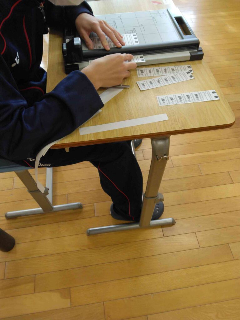 今日は1,2年生 計4名が作業をしています。こやっこフェスティバル【阪神昆陽祭】の金券を丁寧に裁断している様子です。他にもテプラを使って作業をしていました。校外で実習を行っている生徒も緊張感に包まれながら、集中して作業に取組んでいると聞いています。生徒のみなさん、残り3日間がんばってくださいね。