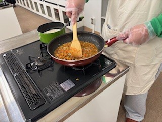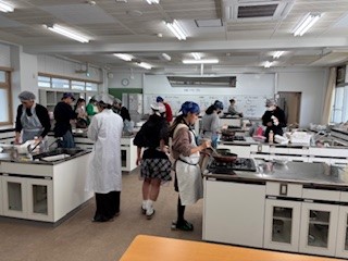 今日は、高校の先生の研究授業にお邪魔しました。まずは、家庭科の「フードデザイン」。調理室に入るとものすごく食欲をそそるいい匂いが。それもそのはず調理実習のメニューはドライカレーとコーンスープ。生徒たちは先生の説明を聞き、班ごとに調理を進めていきます。みんな上手に料理をして、本当に美味しそうに食べていました。