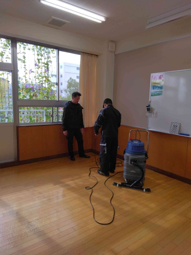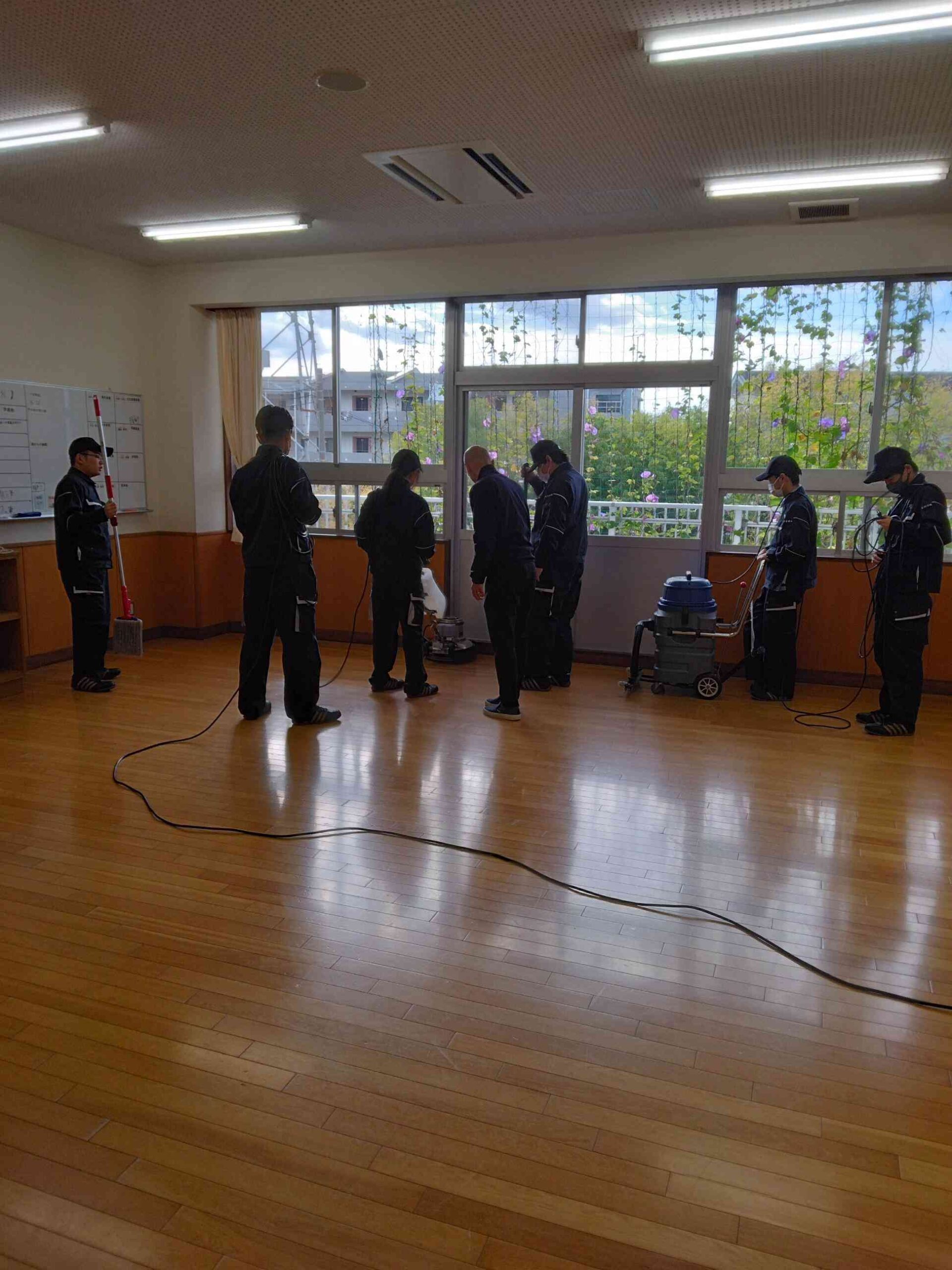 実践的段階的作業学習(流通・サービス2年) 2025年11月18日 hanshinkoya_hs2 コメントする 先週は3年生の指導していただきましたが、今日は2年生の教室機械清掃を光城ビル管理(株)吉海先生に指導していただきました。 教室の床清掃におけるポリッシャーとバキュームの応用的な使用方法について、吉海先生に実際に手本を見せていただきながら学ぶことができました。