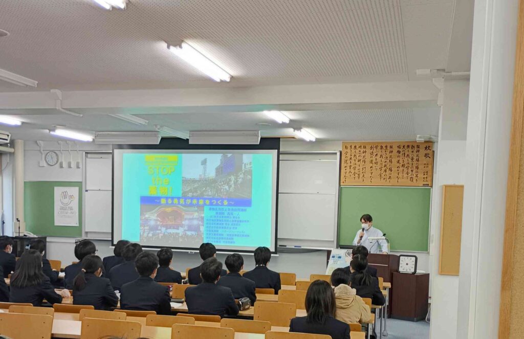 12月3日(水)4時間目 兵庫県薬剤師会学校薬剤師部 高尾一人様から「Stop the 薬物!」~今日の自分が未来をつなぐ~と題して、薬物乱用の危険性と薬物から自分の健康を守る方法を教えていただきました。