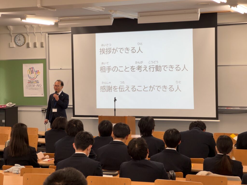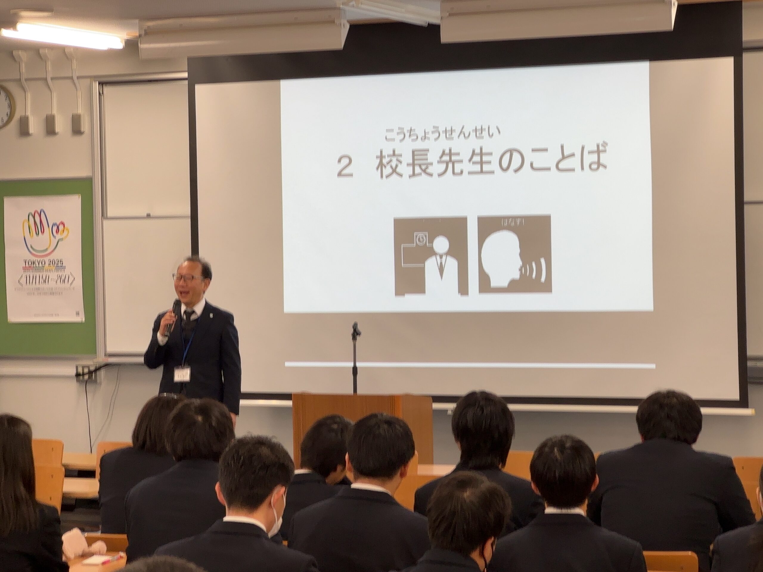 全校集会(特別支援) 2025年12月25日 hanshinkoya_hs2 コメントする 12/24(水)、特別支援学校は大講義室で全校集会を行ないました。まずは校長からのお話。この巳年の1年を振り返ります。続いて、校歌斉唱で締めくくります。 生徒会の皆さんが、しっかり進行してくれました。その後、生徒指導部長の先生から冬休みの過ごし方についてお話を聴きます。 新年、皆さんが元気な姿で登校してくることを心待ちにしています。良いお年を!