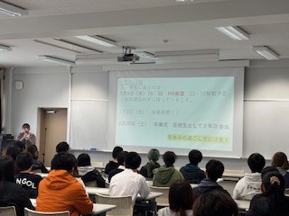 年次部集会(高校) 2025年12月25日 hanshinkoya_hs2 コメントする 12月24日(水)、1・2部は年次に分かれて5限に年次集会・HRを、3部は7限に部集会を行いました。それぞれの年次で新年に向けての連絡やクイズ大会など趣向を凝らした集会が行われていました。 この1年を振り返って如何できたか?また、色々と指導していただいた先生方もお疲れ様でした。 新年、皆さんが元気に登校してくることを心待ちにしています。良いお年を!