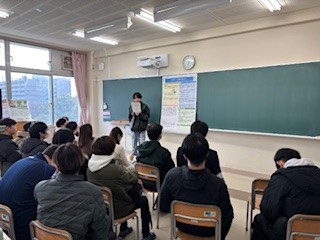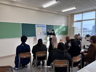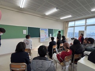 1/15(木)13:30から「総合的な探究の時間発表大会」を行いました。この大会は初めて実施するもので、3年生が個人で今まで調査研究してきたことをポスターにまとめ発表するポスターセッションと2年生がグループで行った探究活動のスライド発表を全校生が聞き、質疑応答する形で行いました。