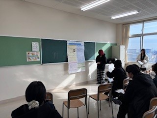発表終了後、名古屋外国語大学の竹内慶至准教授をはじめとする3名の講師の方から発表した3年生に対し講評を頂きましたが、「生徒の皆さんが堂々と発表し、聞く側もしっかりとそれを受け止め素晴らしい発表でした」とお褒めいただきました。私自身も、生徒の皆さんの成長ぶりに驚かされました。