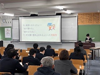 1月16日(金)、31年前に阪神淡路大震災が発生した前日に特別支援学校では震災学習を行いました。今回は、兵庫県教育委員会の震災・学校支援チーム(EARTH)の隊員を講師として招きお話しを聞きました。さらに、本校の防災ジュニアリーダーが活動の報告を行いました。生徒はみな真剣に聞いていました。