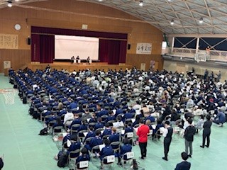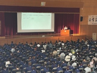 生徒総会・薬物乱用防止講演会(高校) 2026年4月30日 hanshinkoya_hs2 コメントする 4/30(木)、生徒総会が開催されました。生徒会執行部から生徒会費について昨年度の決算及び本年度の予算について説明があり、承認をうけました。執行部の皆さん、そして議長さん、お疲れ様でした。 続いて薬物乱用防止講演会が行われました。講師に本校の薬剤師である曾和洋平様ににお越しいただきました。 全校生が体育館に集まり、オーバードーズなど薬物乱用への危険につながる行為についてお話をしていただきました。画像も交えながらわかりやすく解説していただき、生徒の皆さんもしっかりと聴いてくれました。