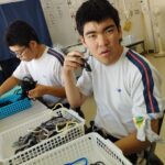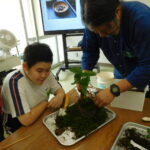 盆栽師の宮里凜太郎さんをお招きし、高等部1年対象に特別授業を実施しました。裏山で小さな木と苔を採集し、盆栽鉢に定植しました。