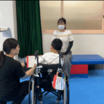 グループ学習(自立活動)Ⅲの時間にグループⅢでは、ほうきや雑巾の使い方をゲームを通して学習しました。ジグザグに貼られたテープに沿ってほうきでボールを掃いたり、雑巾でボールをゴールまで運んだりしました。3色のボールを色分けしながら掃くゲームではみんな集中して最後まで頑張り、掃除道具の使い方がとても上手になりました。