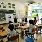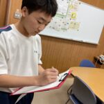 3年生が修学旅行に向けて事前学習に取り組んでいる間、1・2年生はインタビュー学習に取り組んでいます。